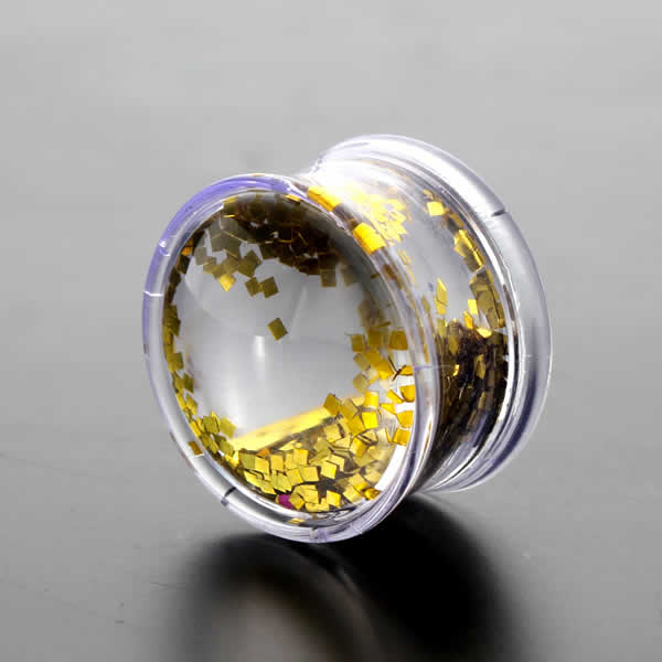 ゴールドラメクリアプラグ 0ゲージ 0G 00ゲージ 00G 12.0mm 12mm 14.0mm 14mm 16.0mm 16mm 18.0mm 18mm 20.0mm 20mm 22.0mm 22mm 24.0mm 24mm 26.0mm 26mm ボディピアス メンズ レディース フレア ダブルフレア 金色 紙吹雪 くす玉 おもしろ 面白い 透明 動く
