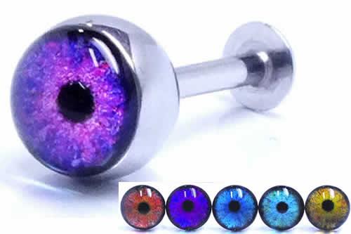 不気味な目をデザインしたラブレット型ボディピアス。眼の色だけじゃなく、大きさも選べる。片側がフラットになったラブレットピアスは口ピアスやトラガスなどの反対側が狭くなった場所へのピアッシングに最適です。内径サイズも選べてプレーンな形状のボディピアスなので、ファーストピアスにもお奨めです。ビーズリングタイプやバーベルタイプと一緒に使えばハードさ倍増。クールなボディピアスです。