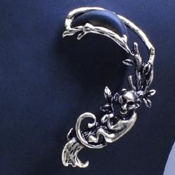 木に止まる猿をデザインした個性的なイヤーラップピアス。アンティークゴールドメッキされたイヤーラップがスタイリッシュにきまる。装着方法は、上部の枝の部分を耳の上を挟むように引っかけ、ピアスを耳たぶに装着する。耳の形や大きさに合わせて形を調整してください。この存在感でこの価格はかなりお手ごろ!