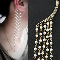 イヤーフックにスダレ上に合成パールチャームをセットしたボヘミアンイヤーカフ。
