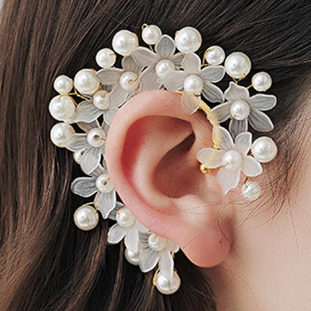 ホワイトブライダルフラワーパールイヤーフック 右耳 1個 花 真珠 アクリルビーズ 結婚式 衣装 モデル 撮影 雑誌 耳にかける ノンホールピアス 開けない イヤリング イヤーカフ メンズ レディース 女 プレゼント フォトスタジオ 記念写真 貸衣装 映え SNS 入学式 パーティー