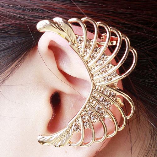ミカエルイヤーフックピアス ゴールド 翼 ウイング イヤーカフ イヤークリップ イヤーフック レディース 結婚式 入学式 卒業式 個性的 耳飾り アクセサリー イヤーラップ 耳にかける イヤークリップピアス 大きい 耳に被せる ラインストーン ジルコニア