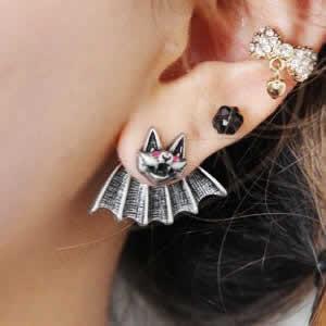 ピアス全身で蝙蝠をデザインしたコスプレのようなイヤーラップピアス。 キュウケツキの顔の部分をポストに、羽の部分をキャッチにしたユニークなデザインのイヤーカフ。 1個販売なので、片方の耳だけにつけてもいいし、両耳につけて存在感をアピールしてもいい。 このコストパフォーマンスは財布にもうれしい! ハロウィンパーティには欠かせないイヤラップピアスです。