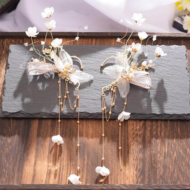 桜ウエディングイヤーフック 両耳用 1ペア 花 フラワー ゴールド 花 フラワー 白色 金色 ホワイト 真珠 パール クリスタル キラキラ 結婚式 ブライダル 衣装 大きい 耳にかける ノンホール イヤリング イヤーカフ レディース 女性 揺れる 発表会 舞台 プレゼント 女の子