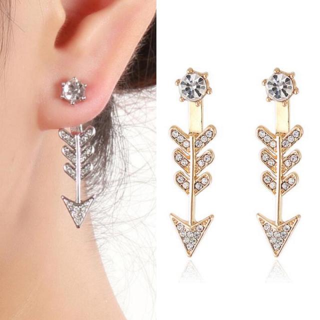 アーチェリー クリスタルバックキャッチピアス 1ペア 弓矢 アロー パベ キラキラ パヴェ シルバー 銀メッキ ゴールド 金メッキ 大きい 20G 20ゲージ ジャケットピアス 後ろキャッチ メンズ レディース 結婚式 スタッドピアス プレゼント ギフト ボヘミアン ジルコニア