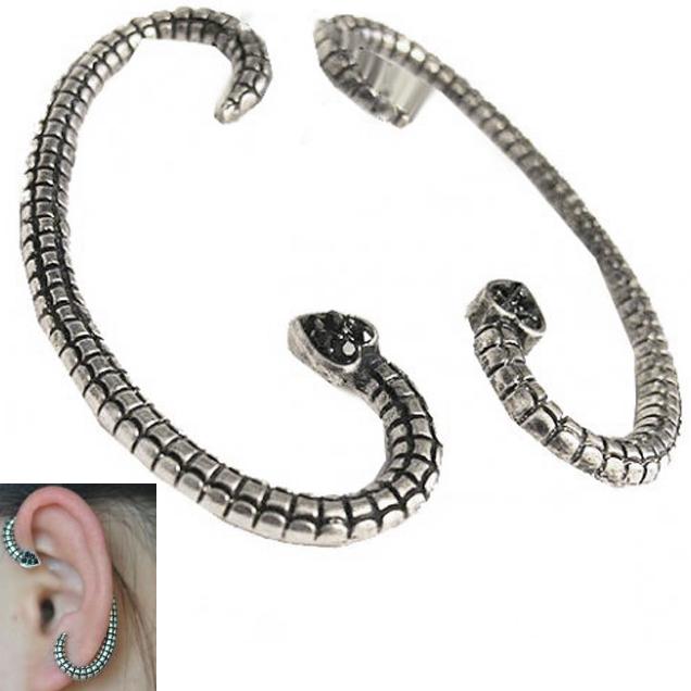 蛇をモチーフにした面白いデザインのイヤーフックピアス。2個で1セットになっているので、両耳に付けてもいいし、友達や彼氏、彼女とシェアしてもおしゃれ。メンズでもレディースでも使えるイヤーカフピアス。プレゼントにも最適です。