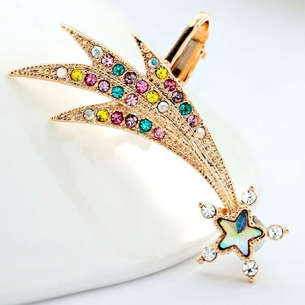 コメットイヤーフックピアス 星 スター 流れ星 イヤーカフ イヤークリップ イヤーフック レディース 結婚式 入学式 卒業式 個性的 耳飾り アクセサリー イヤーラップ 耳にかける イヤークリップピアス 大きい 耳に被せる ラインストーン ジルコニア