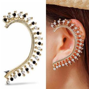 ビジューを散りばめたエレガントでゴージャスなイヤーラップピアス。結婚式の2次会でも使える。
