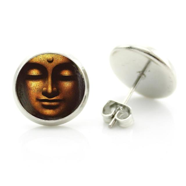 外国人も人気の大仏様をモチーフにしたカボションをスタッドピアスにセットしたオシャレなファッションピアス。