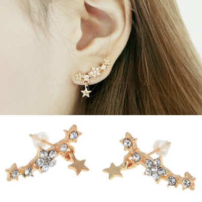 コメットスターゴールドイヤーフックピアス 1ペア販売 星 スター イヤーカフ イヤークリップ レディース 結婚式 入学式 卒業式 個性的 耳飾り アクセサリー イヤーラップ パーティジュエリー 発表会 耳にかける イヤークリップピアス 大きい ラインストーン ジルコニア