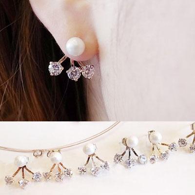 イミテーションのパールピアスに3連のビジューをセットした大人可愛いバックキャッチピアス。ゴールドとシルバーから選べるキュートなとっておきのピアス。