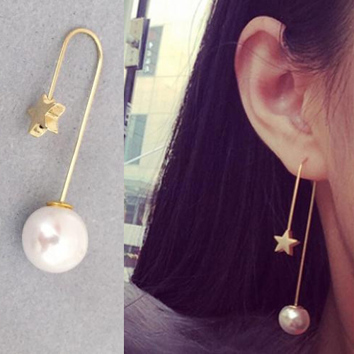 流星パールバックキャッチピアス/1ペア 真珠 スター ゴールド 金色 ジャケットピアス バックキャッチ レディース 結婚式 入学式 卒業式 個性的 耳飾り アクセサリー パーティジュエリー 発表会 後ろキャッチ ファッションピアス 両耳 20G 20ゲージ