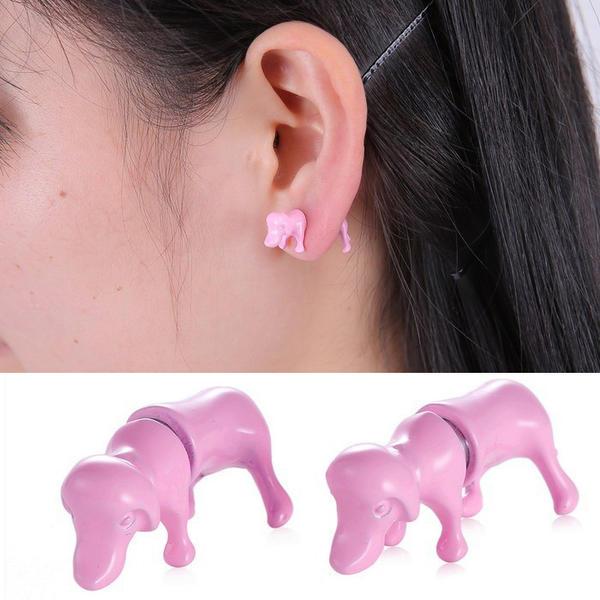 ミニチュアダックスフンドバックキャッチピアス/1個販売 犬 イヌ ドッグ ジャケットピアス アニマル 動物ピアス ユニーク 面白 レディース メンズ おもしろ 個性的 耳飾り アクセサリー 後ろキャッチ ファッションピアス シングルピアス 3D 立体 20G 20ゲージ ピンク色