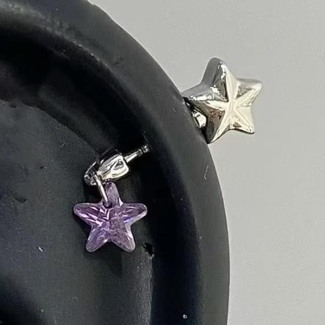 スター&ジュエルスターチャーム ストレートバーベルは、アメジストパープルの星が揺れるデザインがとってもキュートなファッションピアスです。