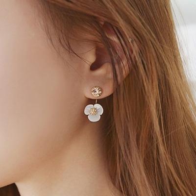 たて爪のジュエルピアスに高級感のある白蝶貝で作ったお花のバックキャッチをセットした大人セクシーなピアス。