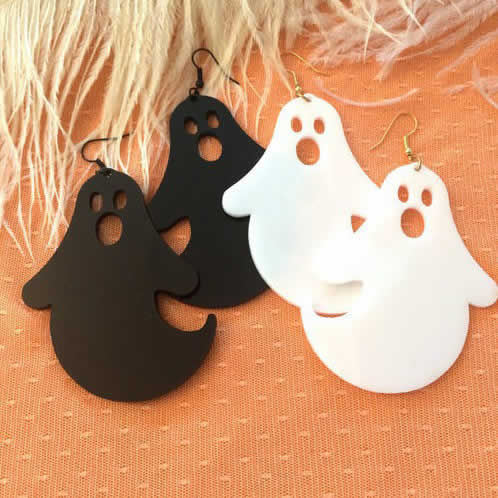 幽霊ピアス/1個販売 ゴースト 幽霊 オバケピアス ホワイト 白 黒 ブラック おもしろ 揺れる アメリカンピアス フックピアス 個性 アクリル 軽い メンズ レディース プラスティック ファッションピアス レギュラーピアス シングルピアス