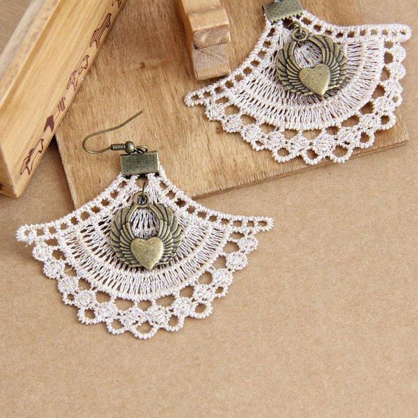 アリスハートステンレスピアス 1ペア販売 サージカルステンレス316L アメリカンピアス フックピアス コットン 白色 ホワイト ベルベット 手編み 可愛い ブラックチェーン メンズ レディース 金属アレルギー 揺れる 20G 20ゲージ アンティークゴールド 扇型 翼 フェザー 羽根