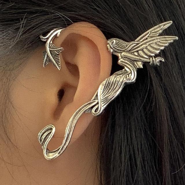 天使の囁き イヤーフックピアス 1個 左耳用 20G 20ゲージ ファッションピアス イヤーカフ イヤーラップ メンズ レディース 面白い 妖精 フェアリー ピクシー エンジェル 女神 葉っぱ リーフ プレゼント ギフト 男性 女性 人気 スタッドピアス ハロウィーン ハロウイン 仮装