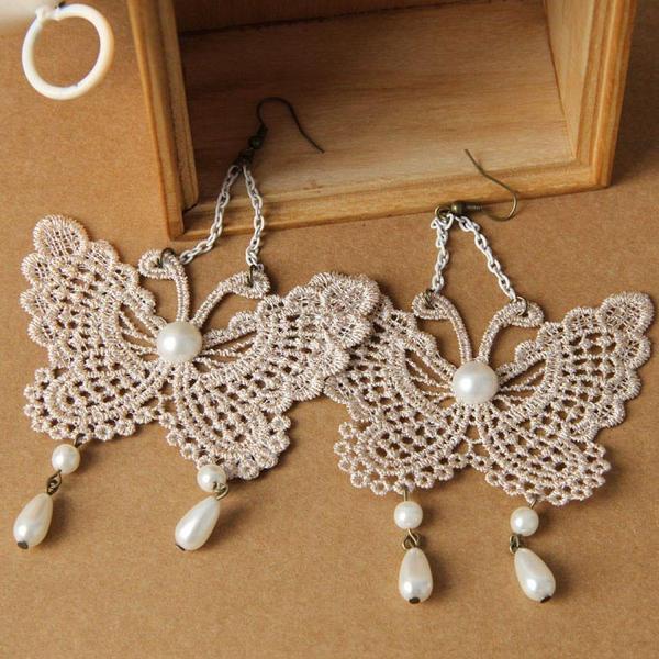 コットン製の大きなチョウチョウの手作りハンドメイドピアス。ゴシックロリータなスタイルにもボヘミアンスタイルにも幅広い服装にコーディネートできるピアスです。