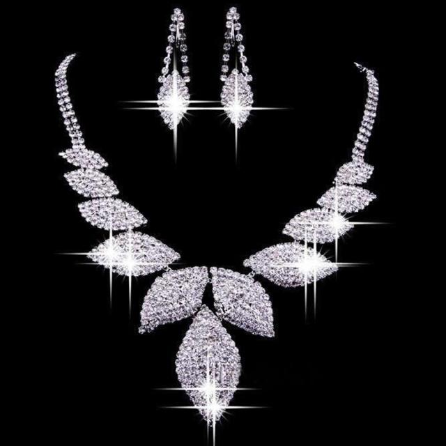 ビッグリーフウエディングジュエリーセット(ピアス&ネックレス) 首飾り チョーカー レディース 結婚式 パーティジュエリー 発表会 卒業式 クリスタル ジルコニア キラキラ キャバ譲 キャバクラ 姫 披露宴 ドレス プレゼント V字型 ジュエリー 20G 20ゲージ コンサート