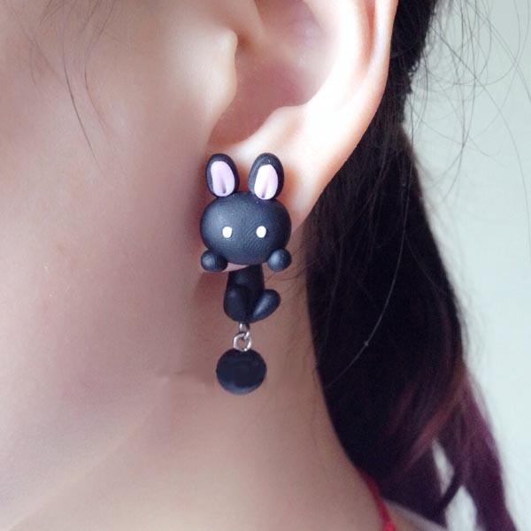 フィギアピアス(黒ウサギ)/1個販売 うさぎ 兎 バニー ラビット バックキャッチピアス 面白 手作り ピアス ユニーク おもちゃ アニマル 動物 立体ピアス 3D おもしろ ファッションピアス レギュラーピアス シングルピアス メンズ レディース ハンドメイド おもしろピアス