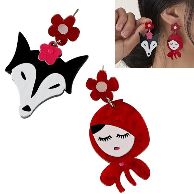 [おもしろい ピアス] 赤ずきんちゃんとオオカミのピアス(1ペア) 両耳 20G 20ゲージ 幼稚園の先生 保育士 赤頭巾 ウルフ 狼 動物 面白い ハロウイン ユニーク メンズ レディース アクリル プレゼント ギフト クリスマス ドラマ 笑い ネタ 結婚式 入学式 卒業式 仮装 大きい