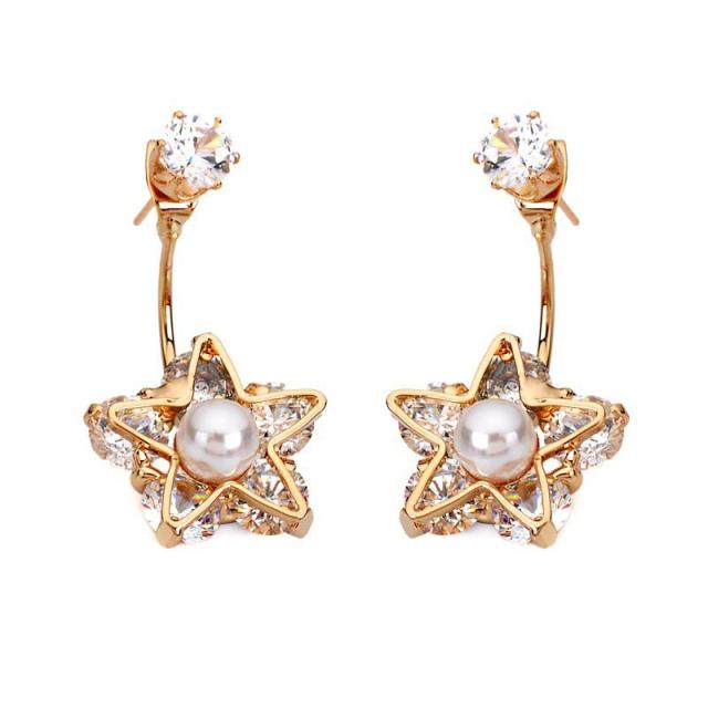 プリシアスタービジューバックキャッチピアス/1ペア パール 真珠 星 ジャケットピアス クリスタル ジルコニア レディース 結婚式 卒業式 入学式 ローズ ゴールド 金色 ファッションピアス 両耳 20G 20ゲージ プレゼント お返し ギフト ホワイトデー 誕生日 人気
