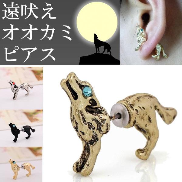 ピアス全身でウルフ(狼)をデザインしたユニークなバックキャッチピアス。
