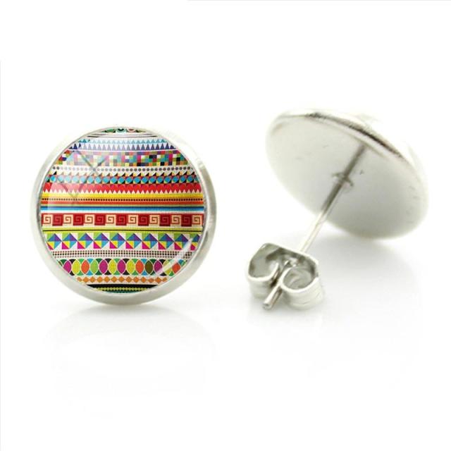 派手な模様をモチーフにしたカボションをスタッドピアスにセットしたオシャレなファッションピアス。