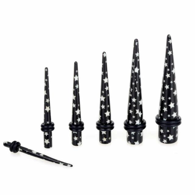 アクリルエキスパンダー(コスモスター) 8ゲージ 8G 6ゲージ 6G 4ゲージ 4G 2ゲージ 2G 0ゲージ 0G 00ゲージ 00G ボディピアス メンズ レディース インサーション テーパー 樹脂 拡張器 大きくする プラスチック 金属アレルギー プラスチック 星 黒色 ブラック