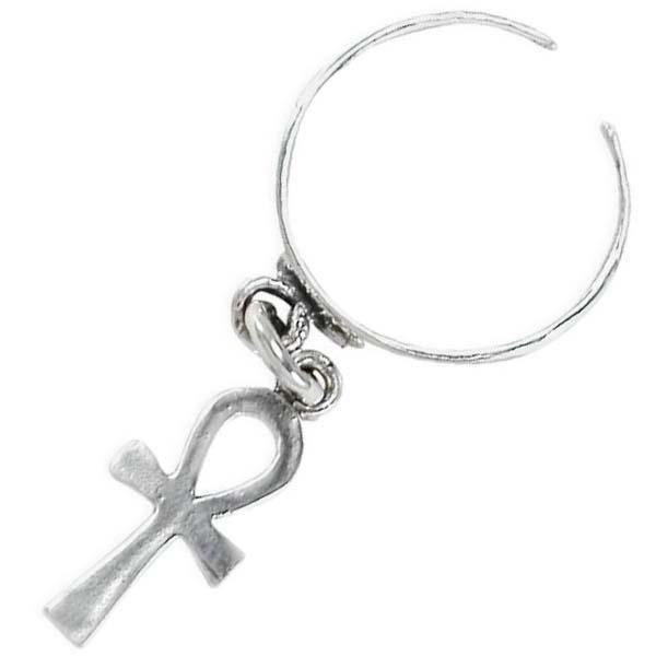 アンククロスチャームトゥリング シルバー925 スターリングシルバー シルバーリング 足の指輪 トーリング 足のリング フォークリング ピンキーリング フリーサイズ レディース メンズ 十字架 チップリング ミディリング ファランジリング ミニリング サイズが小さい