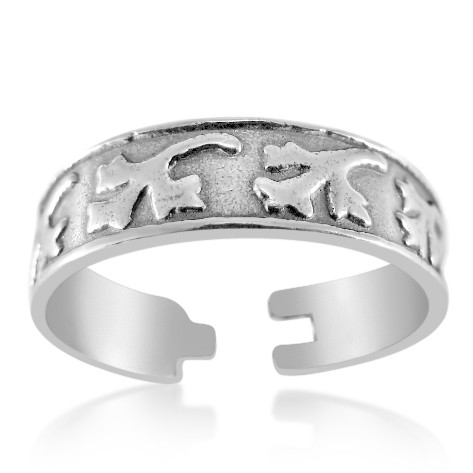 いぶし銀加工したトォリングにいくつものガンジャの葉が並ぶカジュアルなトゥリング。