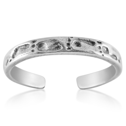 細身のトゥリングに足の裏をいくつもデザインしたユニークな足の指輪。
