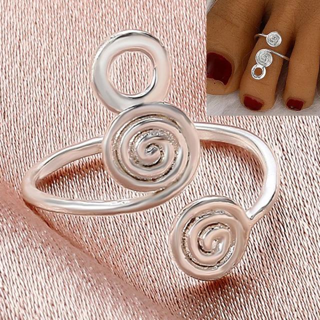 2個の渦巻きをモチーフにしたスタイリッシュな指輪のサイズ調整ができるフリーサイズのトゥリング。