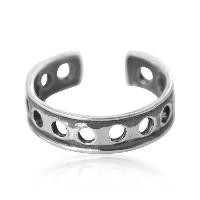 シルバーリングにくり貫かれた丸型が、まるで王冠のような雰囲気を醸しだすトーリングです。