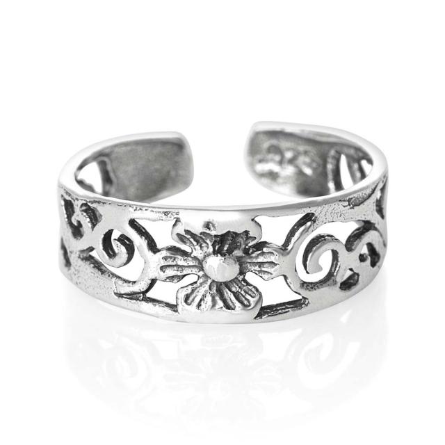 ワイドな幅のシルバーリングに透かし彫りでお花をデザインした綺麗なトウリングです。