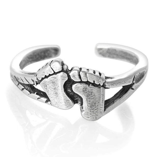 両足トゥリング シルバー925 スターリングシルバー シルバーリング 足の指輪 トーリング 足のリング ピンキーリング フリーサイズ レディース メンズ 足形 足跡 フット チップリング ミディリング ファランジリング ミニリング サイズが小さい 小指 関節 指先 小さめ 夏 素足