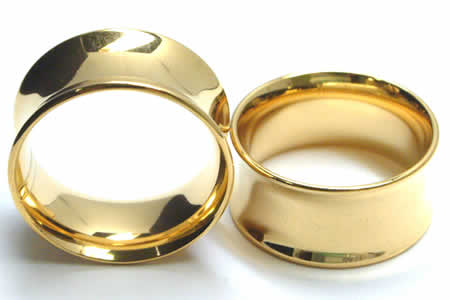 サージカルステンレス製のダブルフレアアイレットに金メッキを施したボディピアス。本物のゴールドで加工していますので、耐久性にも優れ、色・つやなどの見た目もかなりいい感じに仕上がっているアクセサリー。中にゴールドのキャプティブビーズリングを通してホールトゥピア数すればさらにゴージャス。ダブルフレアーアイレット(ダブルフレアーイヤーレット)は、キャッチのないタイプなので見た目もすっきりとしているので、女性にもオススメのジュエリー。シルバーアクセサリーなどとの相性もよく、ストリートアクセサリーの定番になっています。