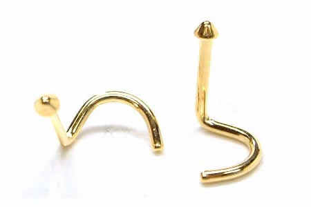 ゴールドメッキのコーンタイプのハナピアスです。ゴールドのアクセサリーは男女を問わず人気が高い。眩しいほどに輝くゴールドのハナピアスは、注目度の高いアクセサリーです。キャッチ部分がツイストされた、はなピアス抜けにくく、鼻の中を傷つけにくい。ファーストピアスにもオススメのハナピ!!ゴールドは定番のジュエリーです。ボールタイプの鼻ピや、18金のハナピアス、ホワイトゴールドや、スタッドピアスなど様々な種類もあります。シルバーアクセサリー好きにはシルバーのハナピアスもあります。一つは持っておきたいジュエリーです。