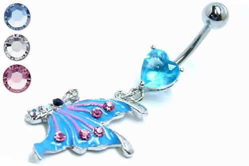 可愛い色の蝶々にジュエルを散りばめたハートのへそピアス。ハート型のキュービックジルコニアと色鮮やかなチョウのチャームが女子度をアップさせてくれるへそピアスです。視線を集められるチャームピアスは彼をクギヅケに出来る♪お臍のピアスとしてはもちろん、耳のピアスにしても可愛い。プレゼントとしてもオススメ!