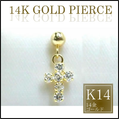 14金クロスジュエルチャームピアス/1個販売 K14 本物の金のピアス 22G 22ゲージ 十字架 ロザリオ メンズ レディース ジルコニア クリスタル CZ 高級 プレゼント 耳 軟骨 ゴールドピアス 細いポスト キャッチピアス 彼女 お返し クリスマス ホワイトデー 入学式 結婚式 ギフト