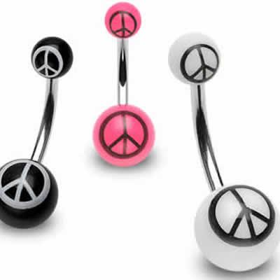 カラフルなへそピアスにピースマークをデザインしたポップなへそピアス。シンプルなフォルムなので、へそピアスのファーストピアスや耳につけてもオススメ。彼と一緒にもコーデできるおしゃれ可愛いへそピアス。