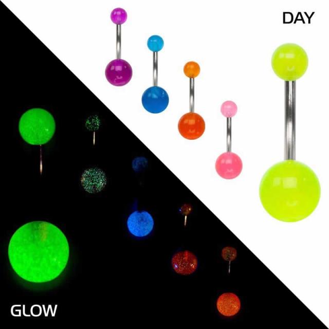 [光る ボディピアス 14G] グロウボール へそピアス (アソート) 14G 14ゲージ 夜光 シンプル おもしろい 面白い アクリル ヘソピアス 臍ピアス サージカルステンレス316L ボディーピアス メンズ レディース ピンク ブルー オレンジ パープル ホワイト イエロー グリーン