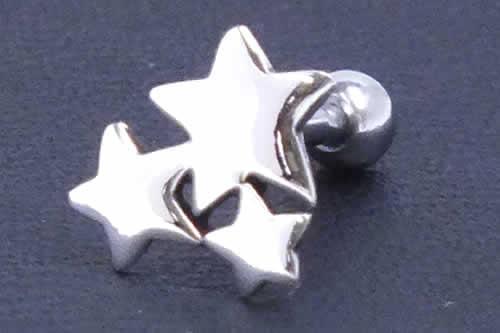 シルバー925製の大きさの異なる3つの星をデザインしたヘリックスピアス。ポップな星のヘリックスピアスは男女を問わないユニセックスなアイテムです。通常のピアスのようなデザインと、シャフトは安心のサージカルステンレスなので、ポストが太めのピアスを探していた人や、ファーストピアスを探していた人にもお奨めのヘリックスボディピアスです。もちろんヘリックスだけでなく、トラガスや耳たぶにも使えるボディピアスは、プレゼントやペアアクセサリーにもお奨め!