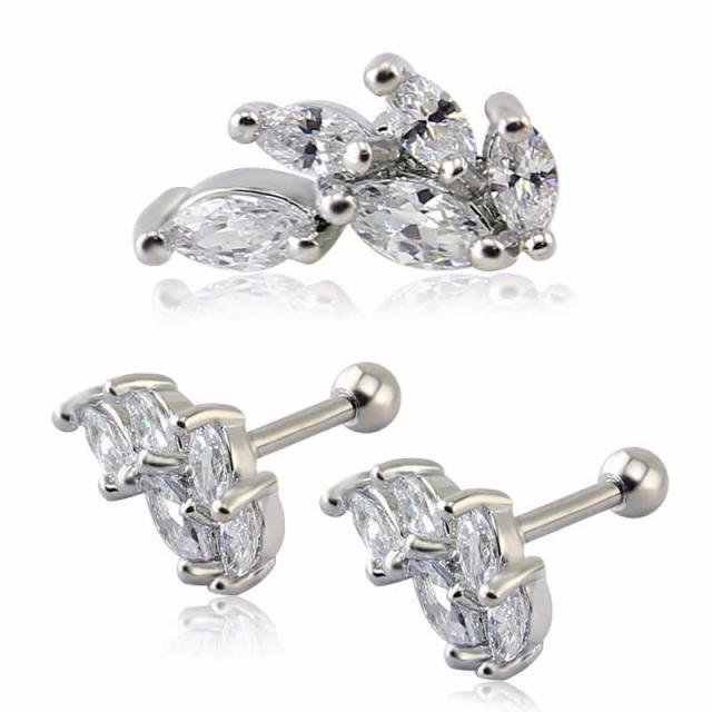 お花をモチーフにクリスタルのキュービックジルコニアをセットした高級感のあるボディピアス。小粒できらりと輝くキュービックジルコニアが上品さをアピール。ヘリックスやトラガスなどの軟骨ピアスとしてはもちろん、耳たぶに付けても綺麗。左右でコーデしたいボディピアスです。