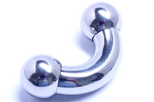 外見はボディピアスの定番のバナナバーベル(別名:カーブバーベル)ですが、ボール部分にネジ山がついたボディーピアススタジオでよく使用されるプロご愛用のインターナルバナナバーベルです。シャフトの内径やボールの大きさも数多くあり、自分にあったサイズのボディピアスを選べます。