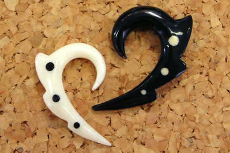 ポイントフックボーン ホーン ピアス 2ゲージ 2G 6ゲージ 6G 釣り針 波 ウエーブ 釣針柄 イヤーフック 拡張器 エキスパンダー インサーションテーパー ボディピアス 水牛の角や骨 メンズ レディース インディアンジュエリー 手作り ボヘミアン ペア 黒色は角 白色は骨
