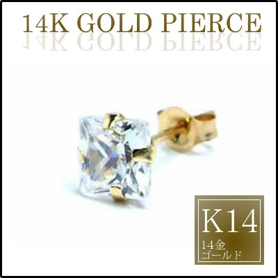14金スクエアジュエルピアス(L)1個販売 K14 本物の金のピアス 四角形 22G 22ゲージ メンズ レディース ジルコニア クリスタル CZ 高級 プレゼント 耳 軟骨 たて爪 立て爪 ゴールドピアス 細いポスト キャッチピアス 彼女 お返し クリスマス ホワイトデー 入学式 結婚式