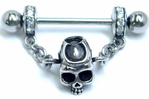 スレイブの名の通り奴隷になったスカルをモチーフにした不気味なニップルピアス。バーベルが通るシールド部分にはクリスタルのジルコニアをセットすることで装飾性をアップさせたニップルボディピアスは見事!綺麗系のニップルピアスとは異なるデザインワークが貴方を虜にする。大人の魅力を存分にアピールできるクールなボディーピアス。もちろんニップルピアスとして以外にヘリックスやイヤーロブなど使い方も自由自在!男性でも女性でも出来るクールなデザインのニップルはペアで愛用したり、プレゼントしたりにもオススメのジュエリーです。
