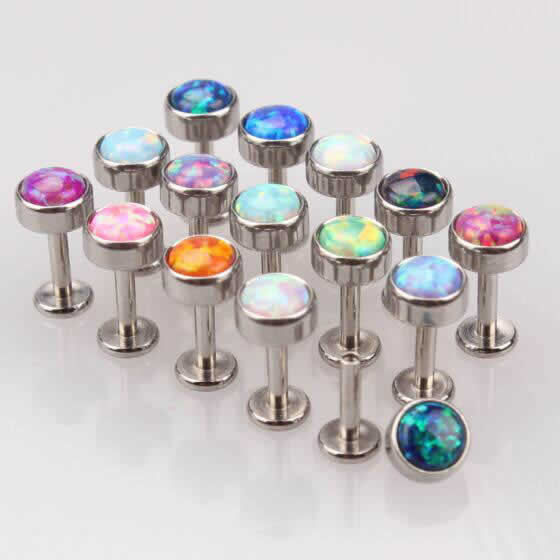 イミテーションのオパールをセットした逆ネジタイプのインターナルラブレット。色合いがとてもきれいなオパールは高級感もあり。プレゼントにもおすすめです。インターナルタイプなので、ホールを傷つけにくく、ファーストピアスやセカンドピアスにも使いたい。トラガスやヘリックスに最適のアイテム。